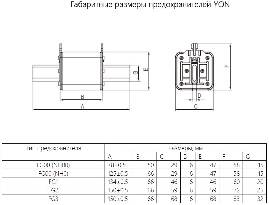 Предохранитель YON ножевого типа FG1 63А 690V характеристика aR